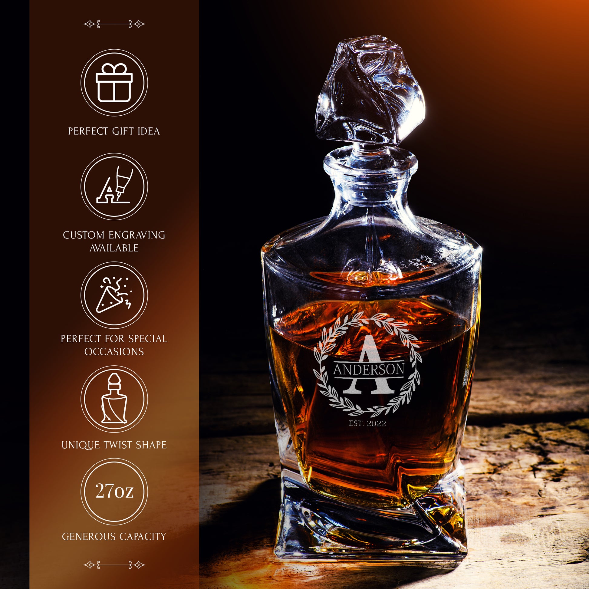 Personalization optionsEngraving on decanter, glasses